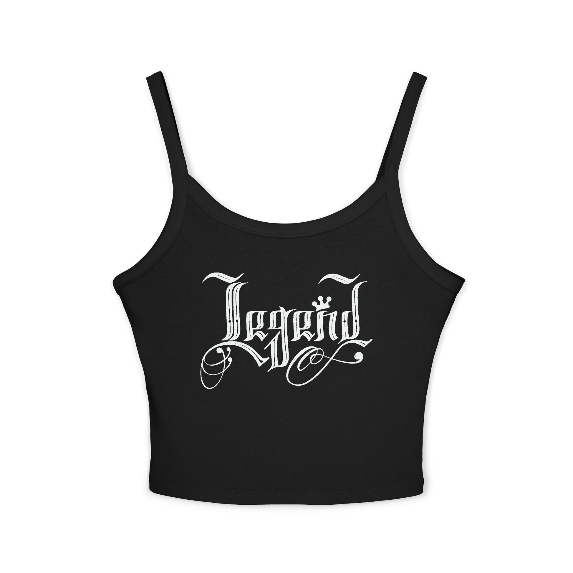 "Legend" Spaghetti Strap Tank Top Unleash timeless swagger with the "Legend" Spaghetti Strap Tank Top, where classic calligraphy meets Chicano street artistry. This bold design fuses intricate lettering with graffiti-inspired strokes, capturing the soul of the streets with undeniable finesse.